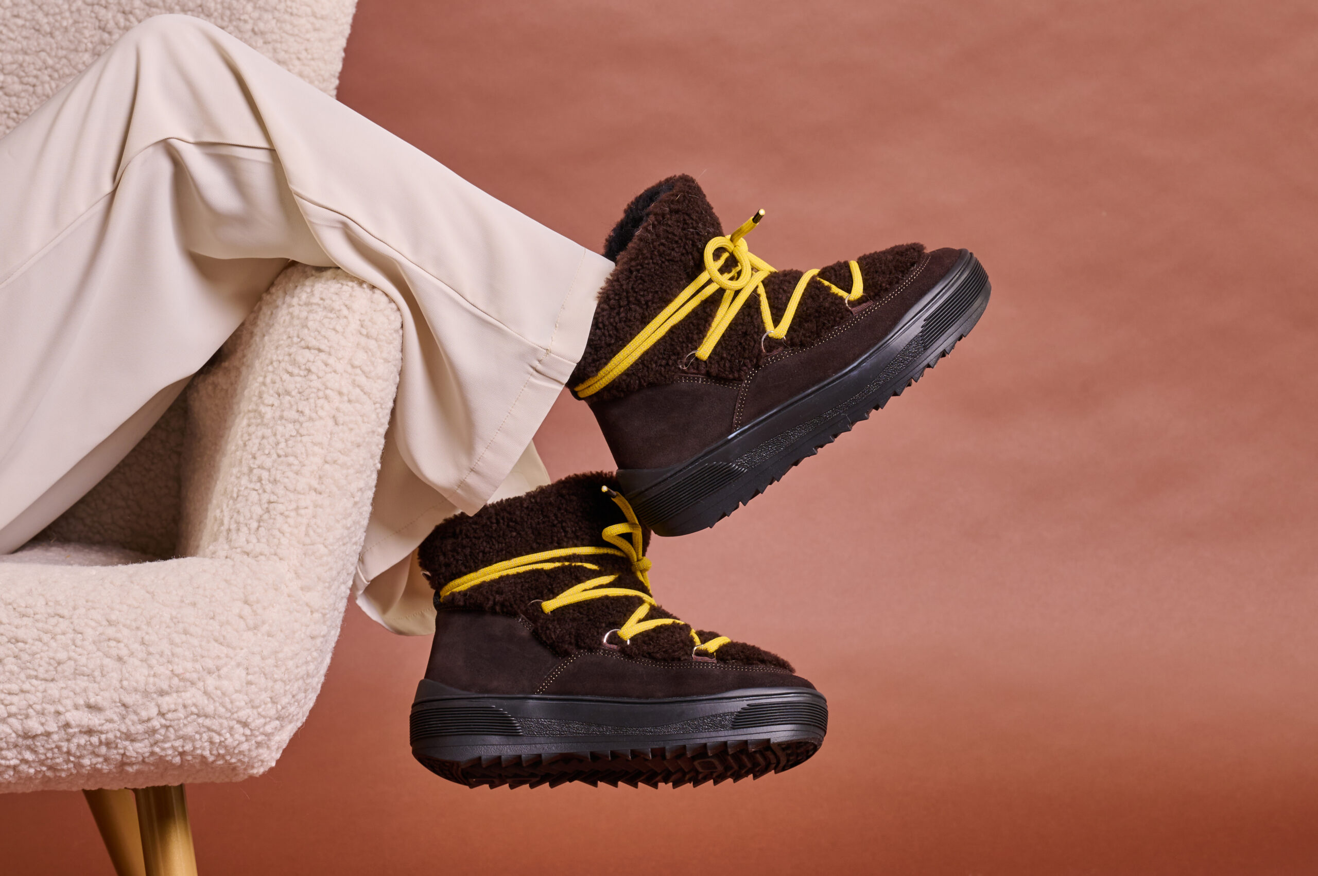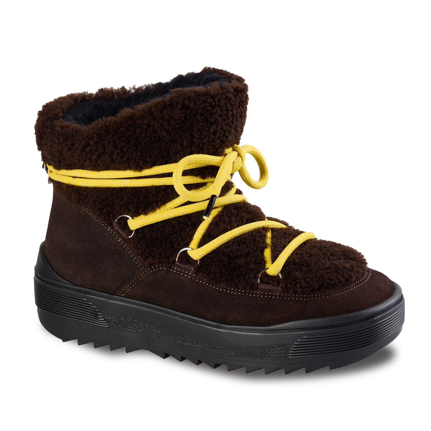 CURMA è un articolo che presenta un esterno in pregiata pelle di montone riccia con dettagli in pelle e camoscio. La morbida fodera in lana garantisce un comfort eccezionale, mentre la calzata più ampia offre maggiore spazio al piede. I lacci colorati aggiungono un tocco giovanile, conferendo allo stivale un carattere giocoso e moderno.